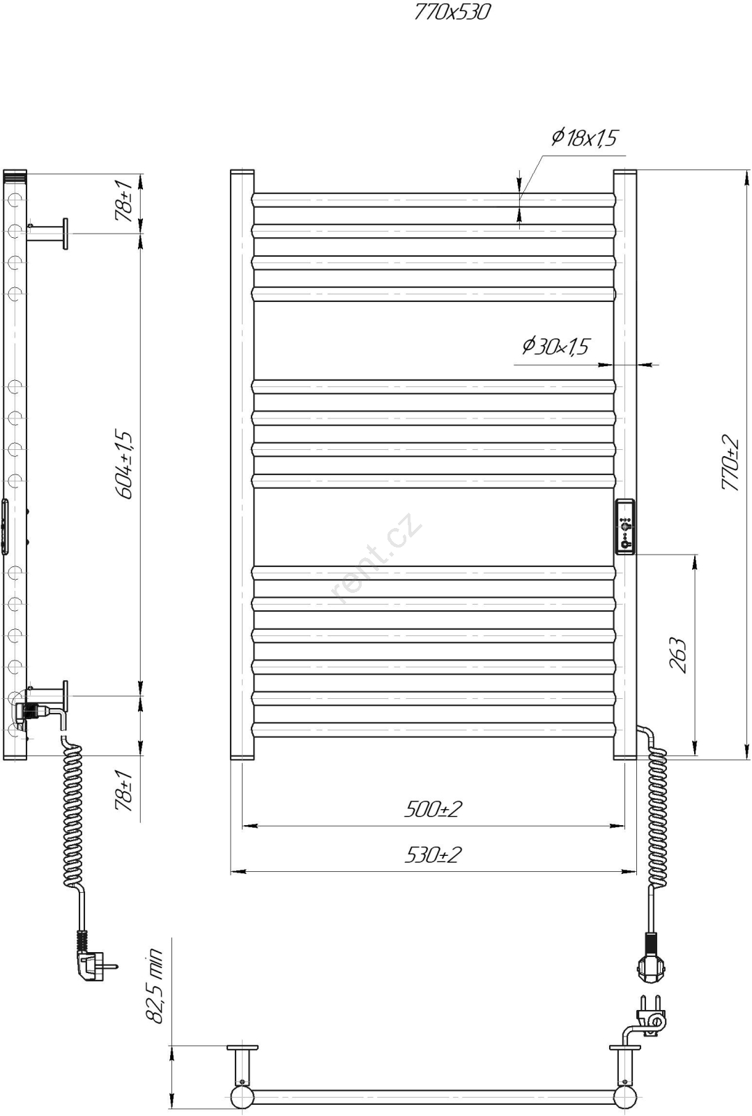 Koupelnový žebříkový radiátor HF GREENWICH 170W/230V 77x53 cm černá pravá kulatý