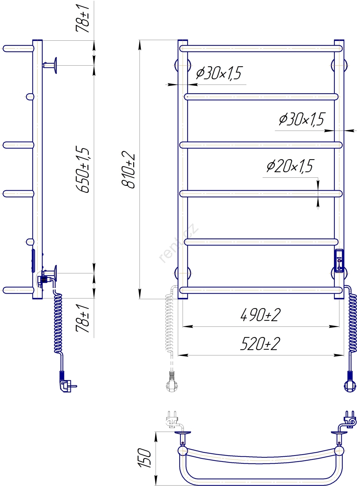 • Elektricky vytápěný koupelnový žebříkový radiátor, vhodný pro sušení ručníků a přitápění koupelny.