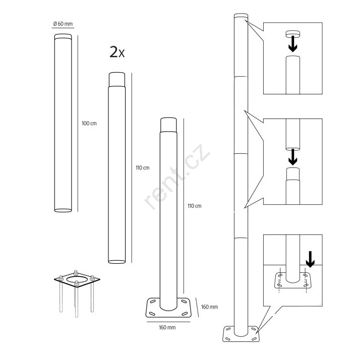 • Kovová tyč složená ze 4 částí s celkovou výškou 4 m.