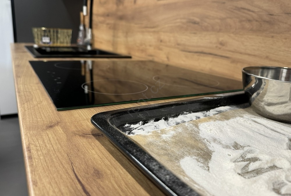 • Praktická kuchyňská linka vám poskytne prostorný členěný úložný prostor a celistvou pracovní desku.