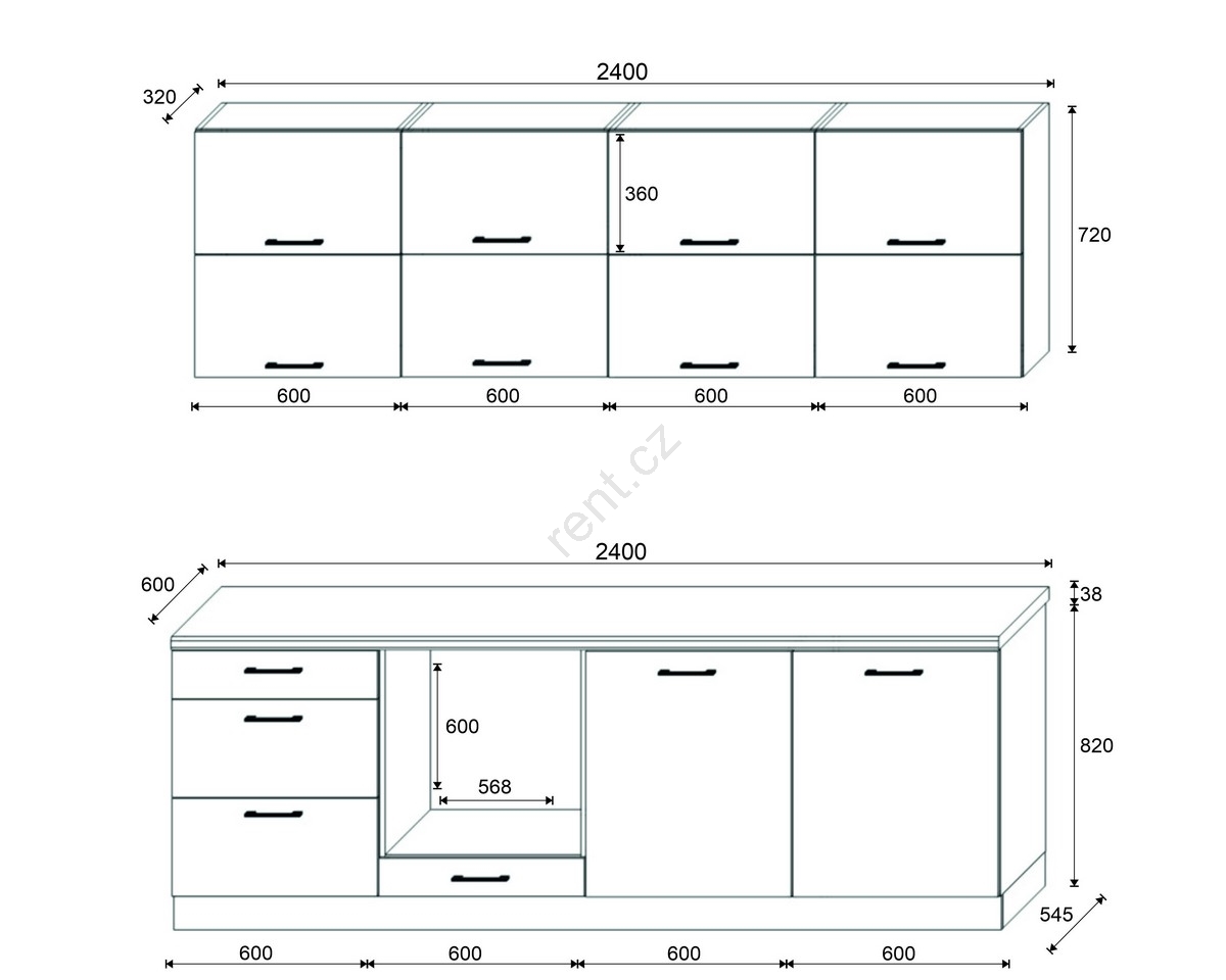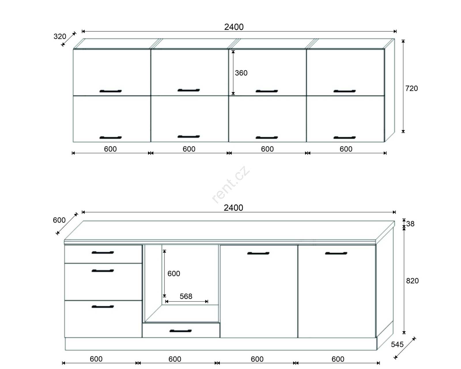 • Uspořádání skříněk je modulární, kuchyni si můžete upravit podle svých vlastních představ.