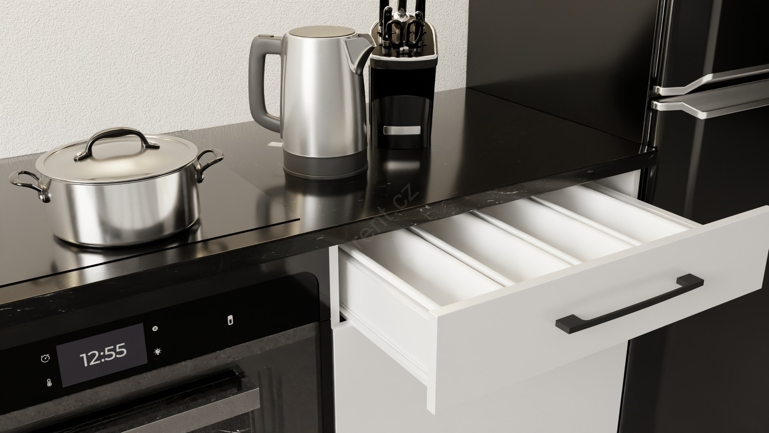 • Praktická kuchyňská linka vám poskytne prostorný členěný úložný prostor.