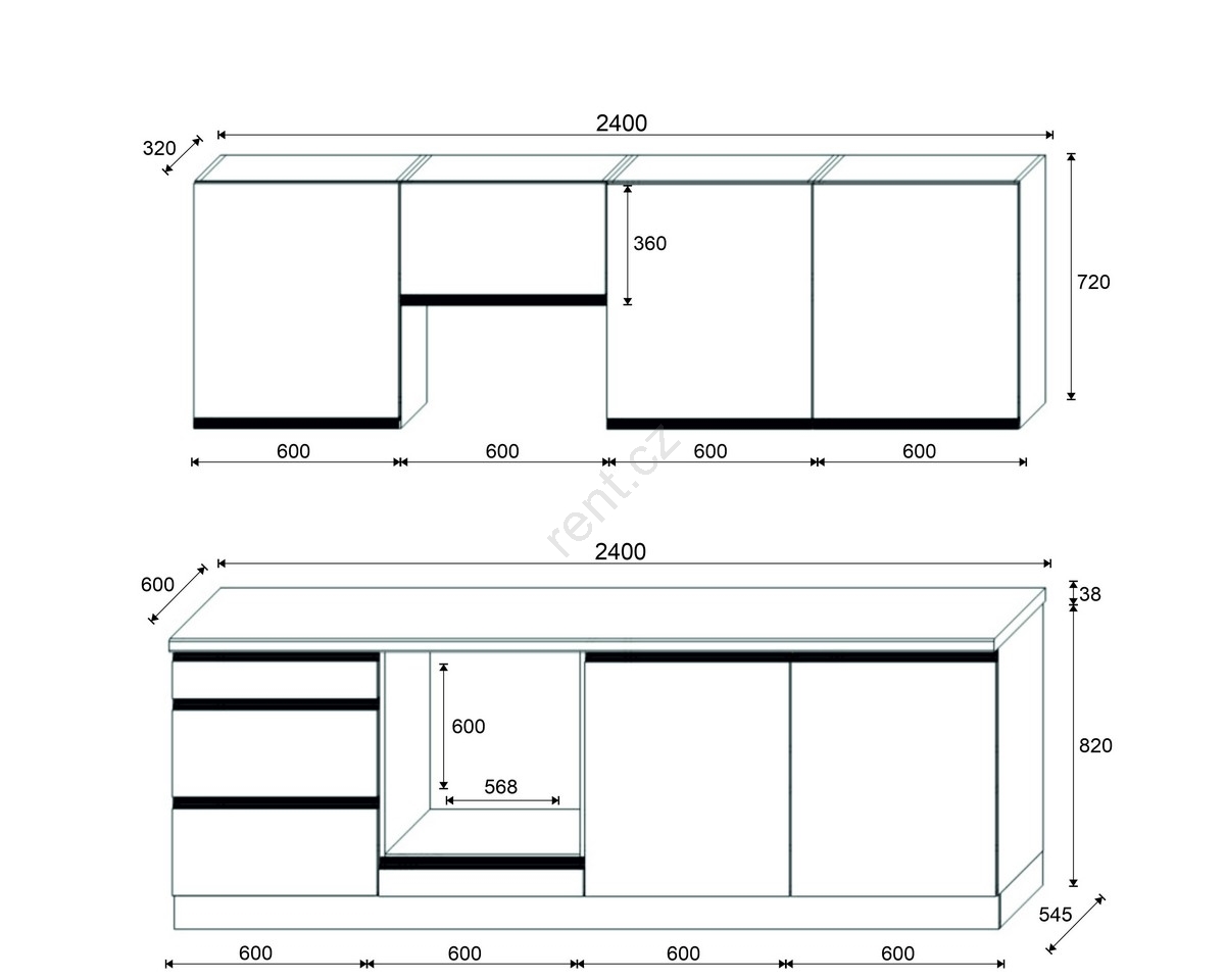 • Uspořádání skříněk je modulární, kuchyni si můžete upravit podle svých vlastních představ.