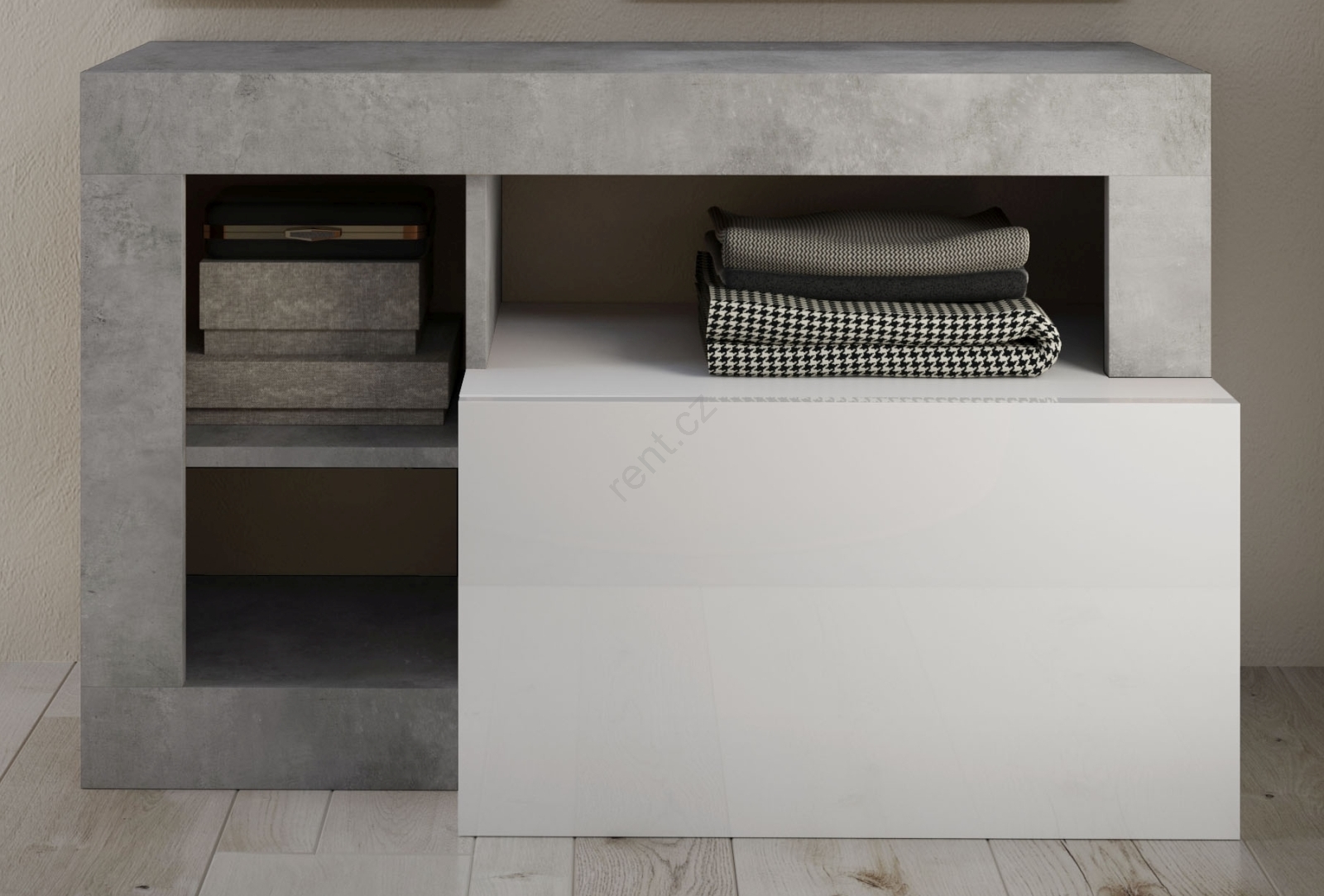 Lavice LENOR bílá/šedá beton
