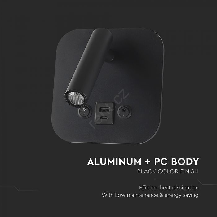 • LED Nástěnné bodové svítidlo s USB portem LED/8W/230V 3000K černá