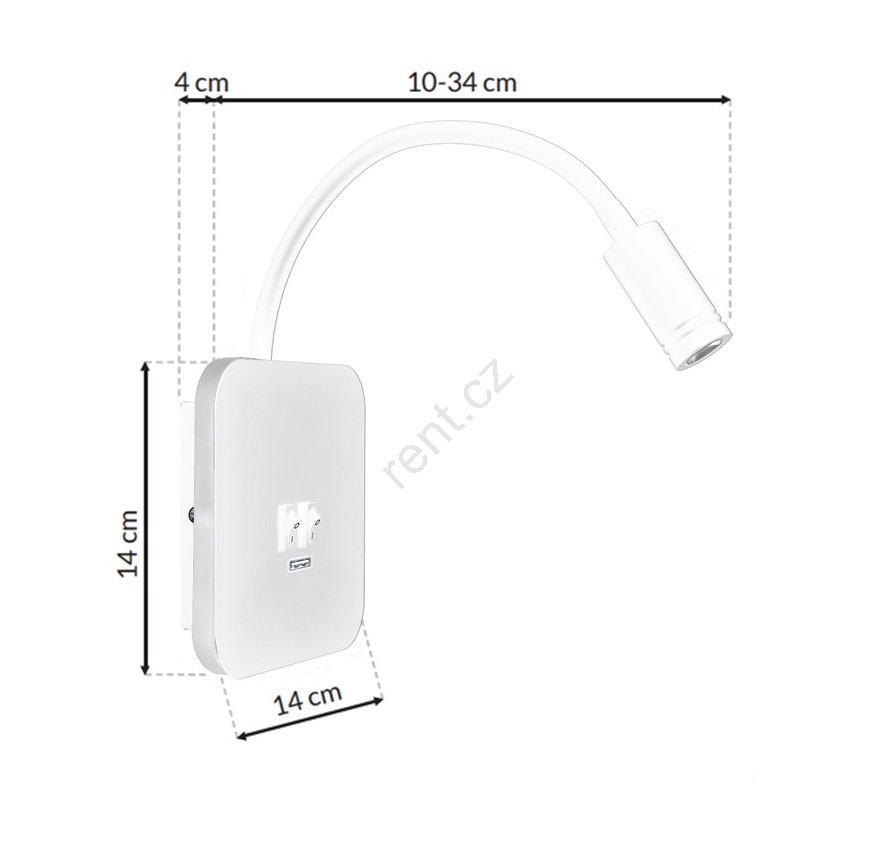 • LED Flexibilní nástěnná lampička s USB BASE LED/8W + LED/2W/230V bílá