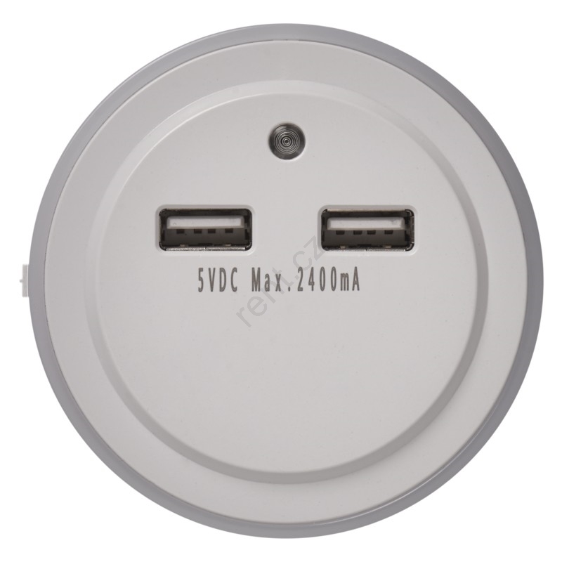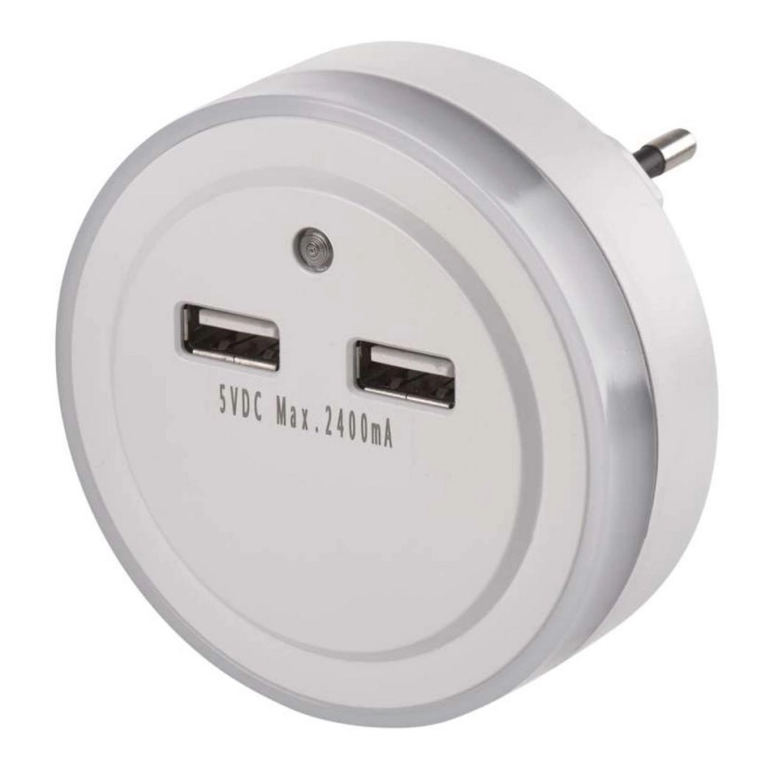 LED Noční svítidlo do zásuvky s fotosenzorem+2xUSB 3xLED/0,3W/230V