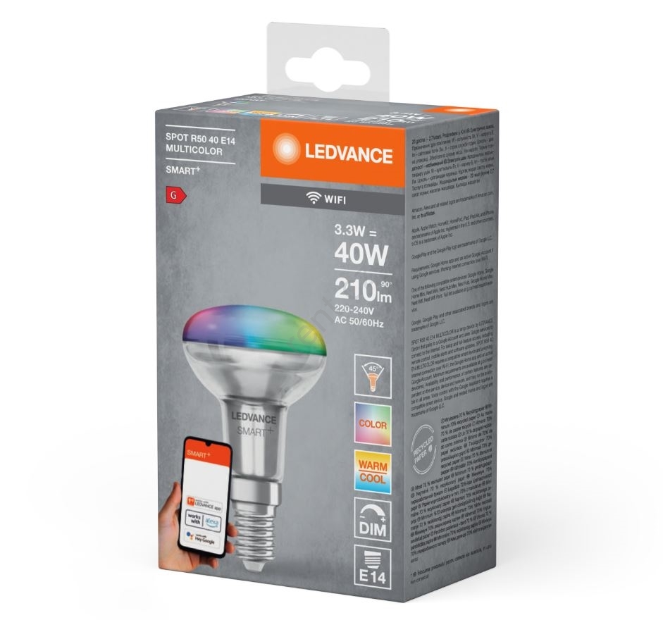 LED RGBW Stmívatelná reflektorová žárovka SMART+ R50 E14/3,3W/230V 2700-6500K Wi-Fi - Ledvance