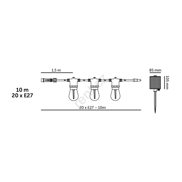 LED Stmívatelný solární dekorační řetěz STARLIGHT NEO 20xE27/3,7V 2700K IP54 1200 mAh 11,5m + dálkové ovládání