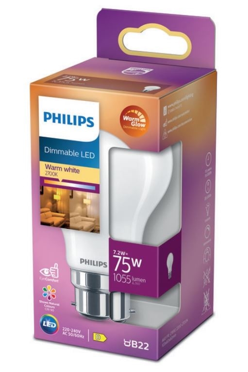 LED Stmívatelná žárovka Philips Warm Glow A60 B22/7,2W/230V 2200-2700K CRI 90