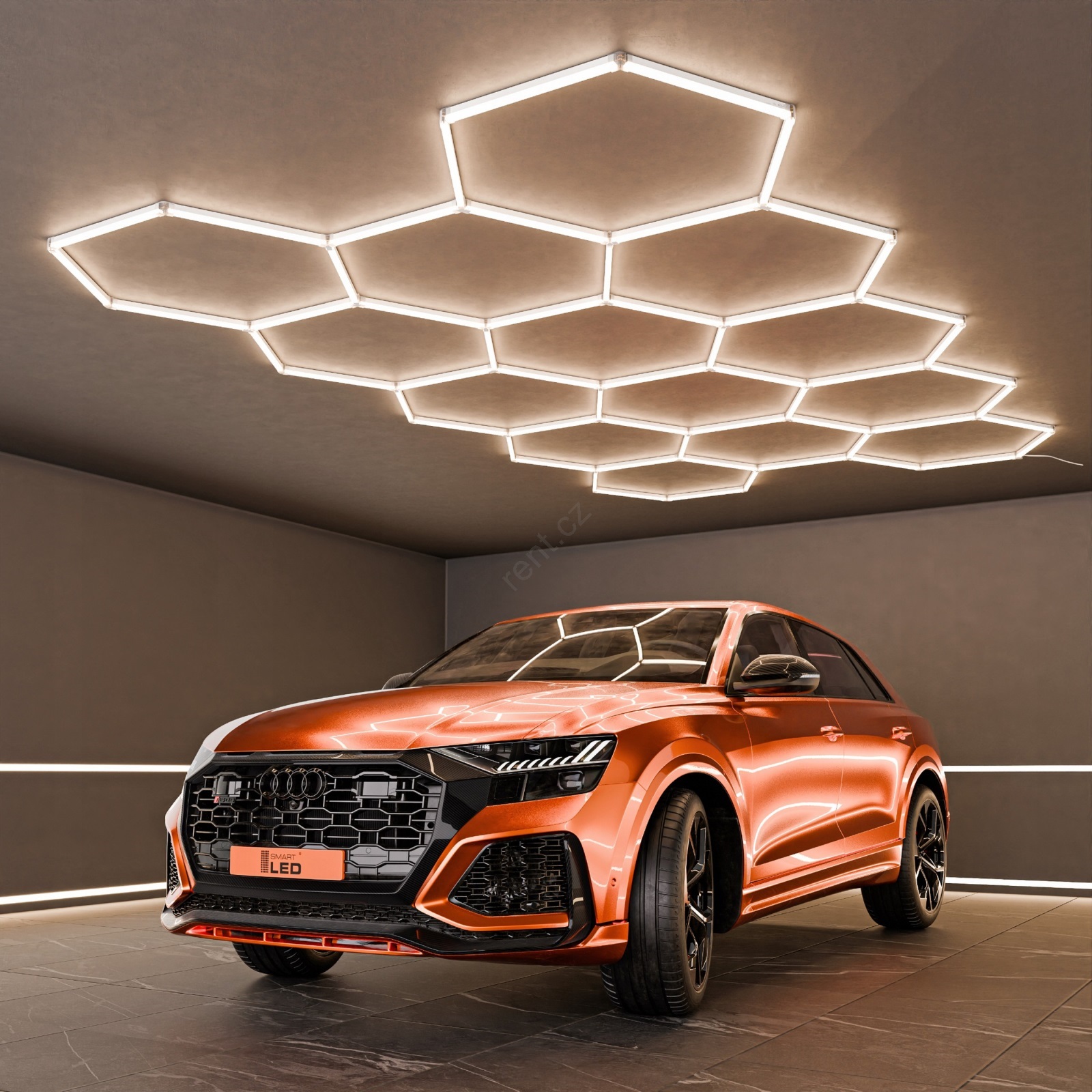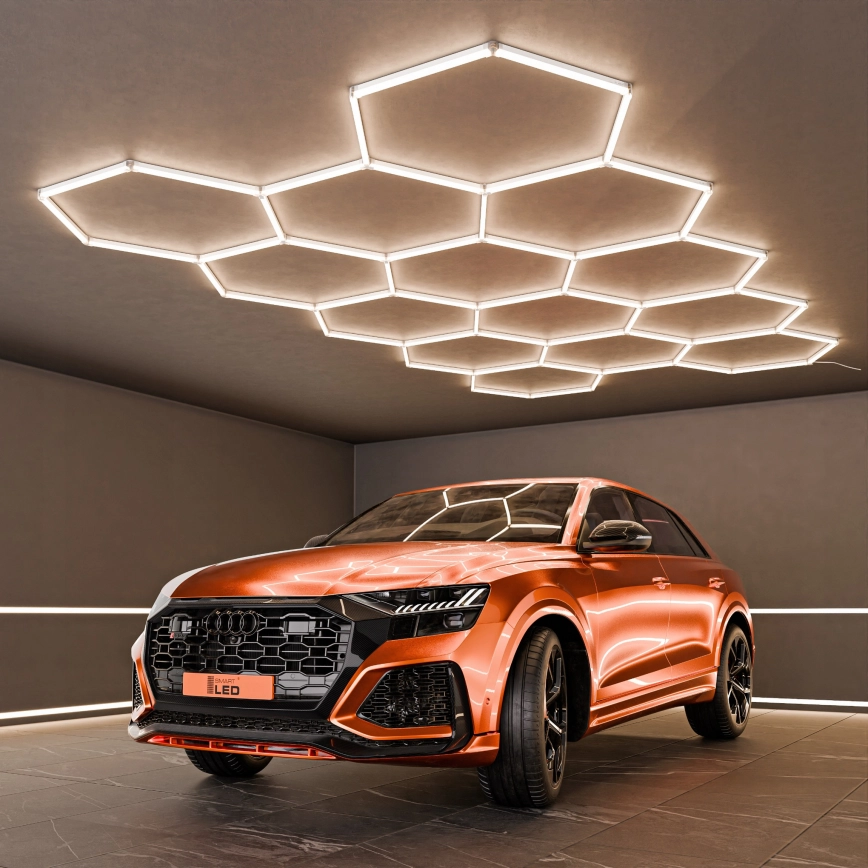 • Díky šestiúhelníkové struktuře působí osvětlení jako estetický prvek i funkční světelný systém.