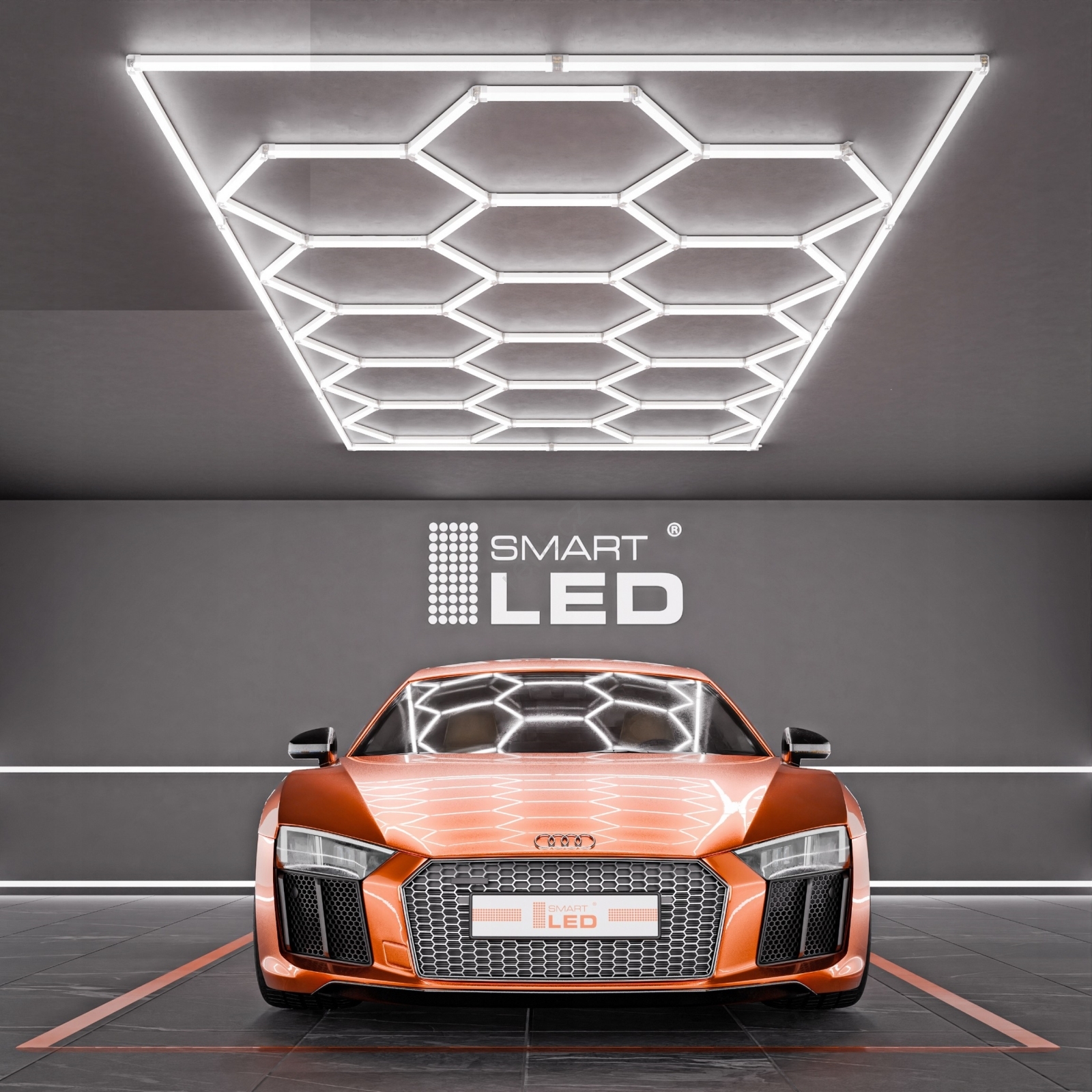 • Díky šestiúhelníkové struktuře působí osvětlení jako estetický prvek i funkční světelný systém.