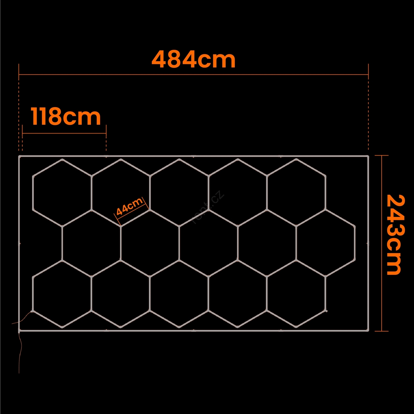• Rozměr rámu: 484 x 243 cm — pokryje velkou plochu bez potřeby jednotlivých lamp.