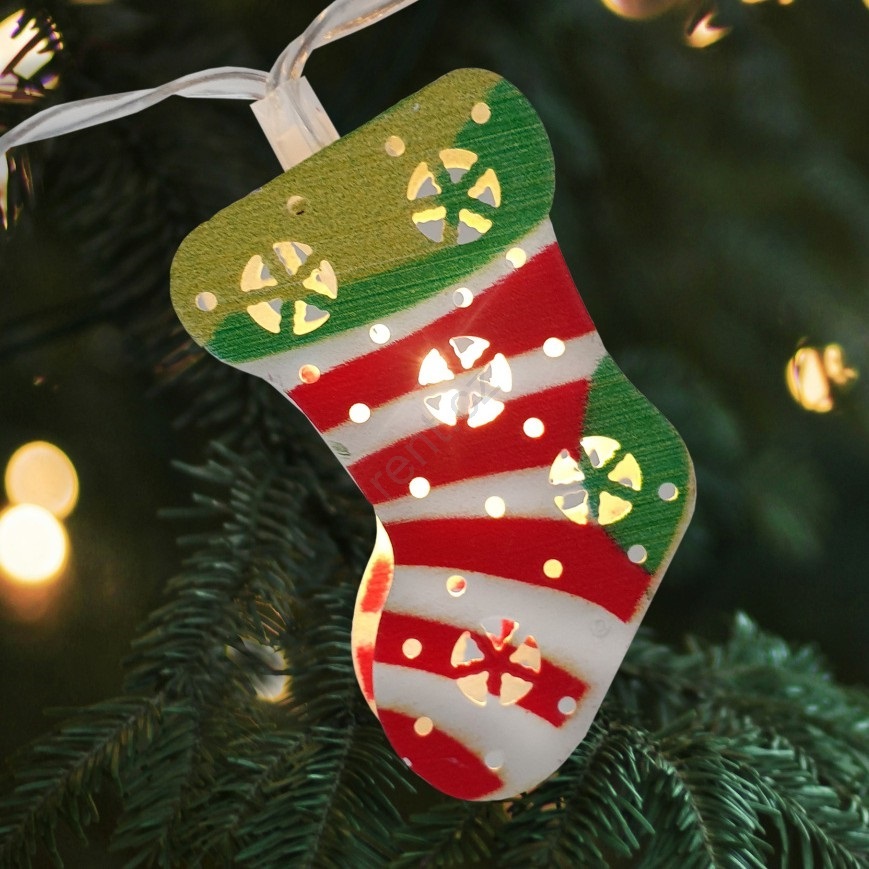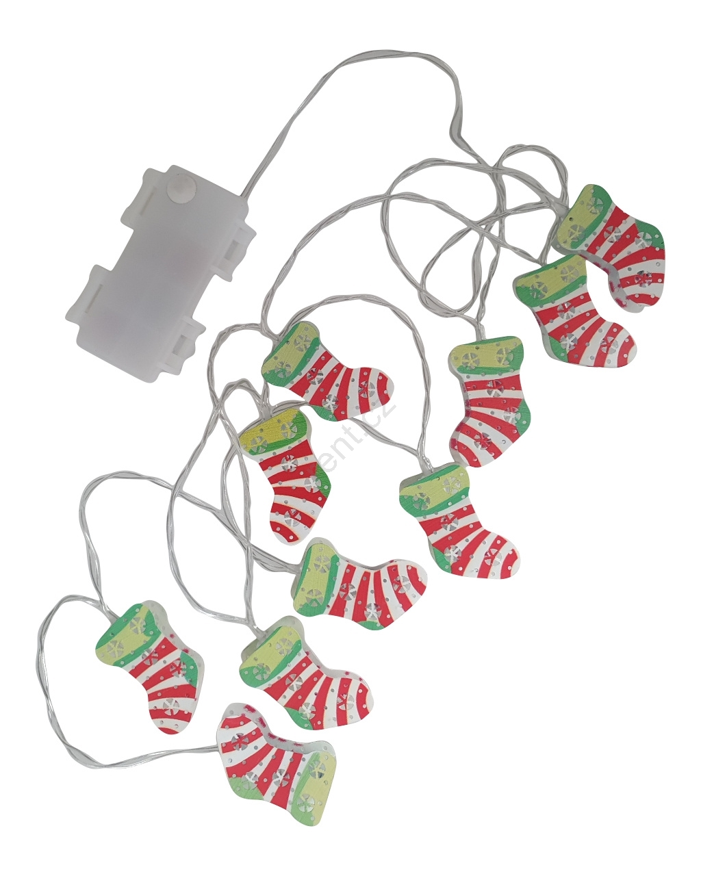 LED Vánoční venkovní řetěz 10xLED/2xAA 1,65 m IP44 teplá bílá punčochy