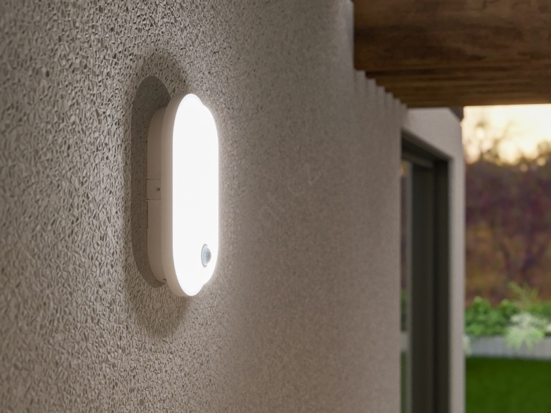 LED Venkovní nástěnné svítidlo se senzorem pohybu a soumraku OVAL LED/10W/230V IP65 bílá