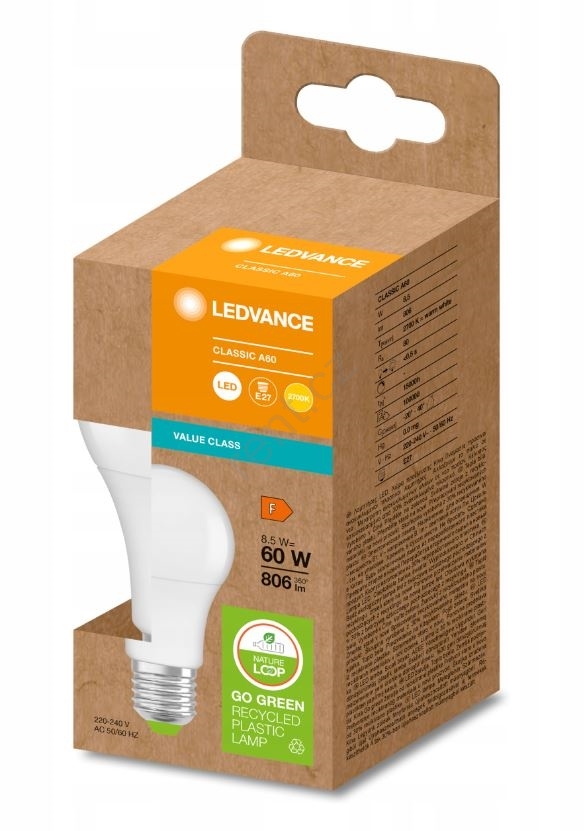 LED Žárovka z recyklovaného plastu A60 E27/8,5W/230V 2700K - Ledvance