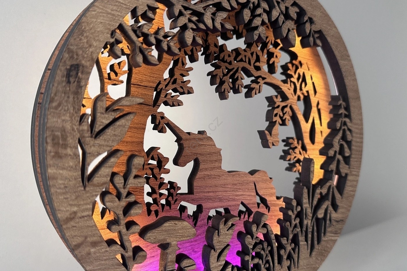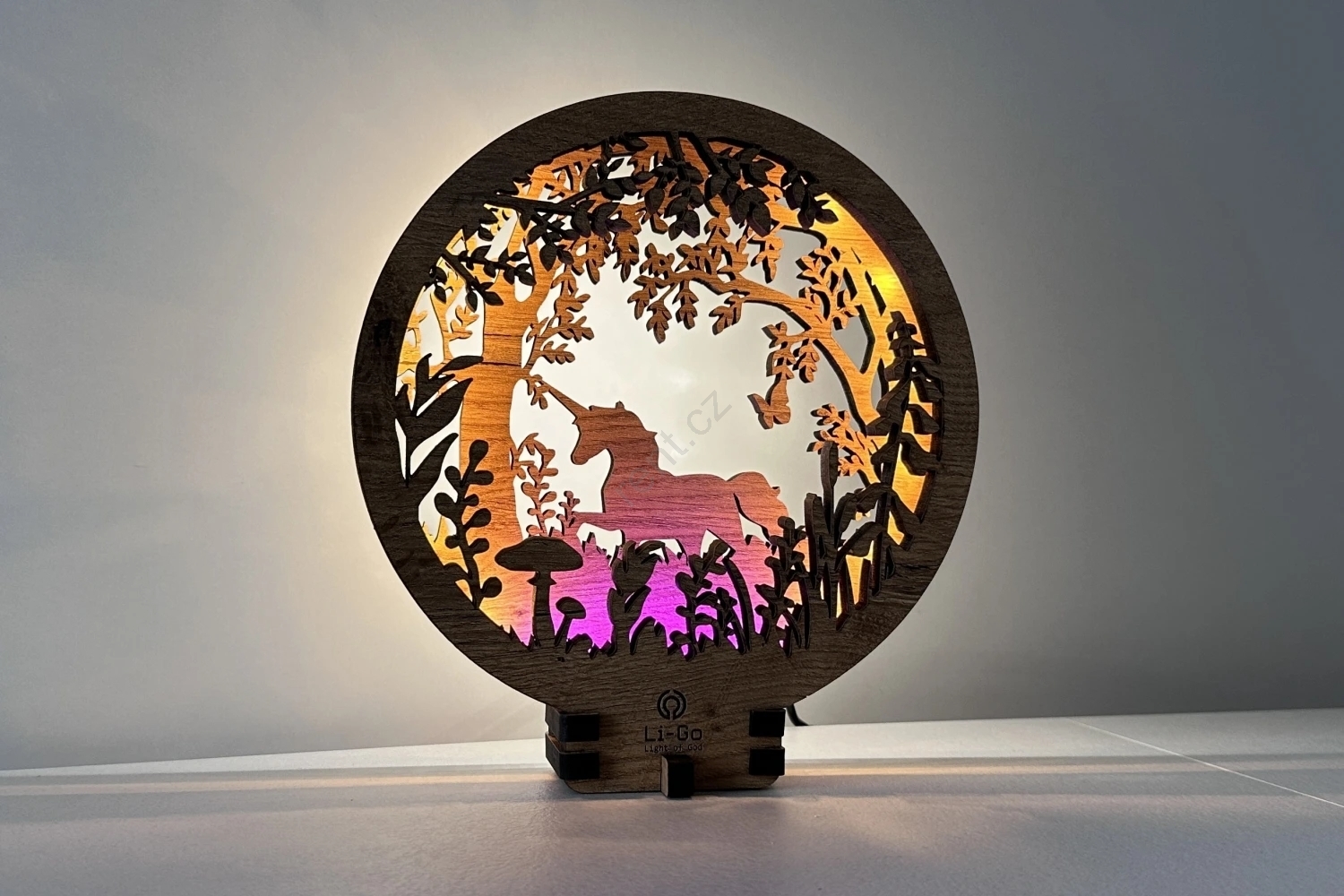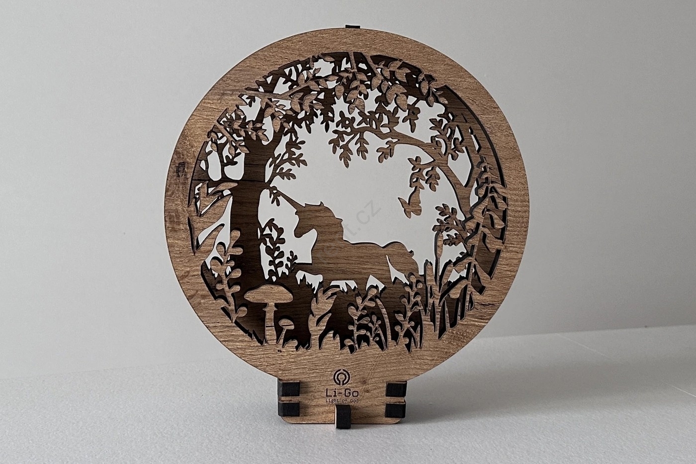 Li-Go 23568/DUB2 - LED Stmívatelná stolní dekorace LED/12W/230V 20x22 cm dub/Jednorožec