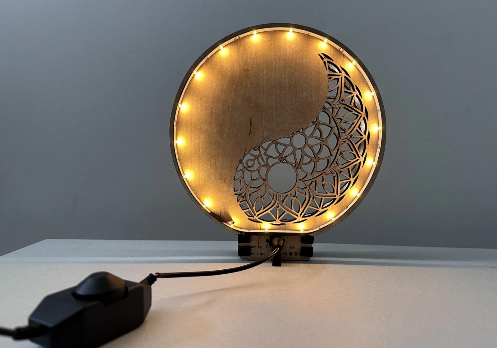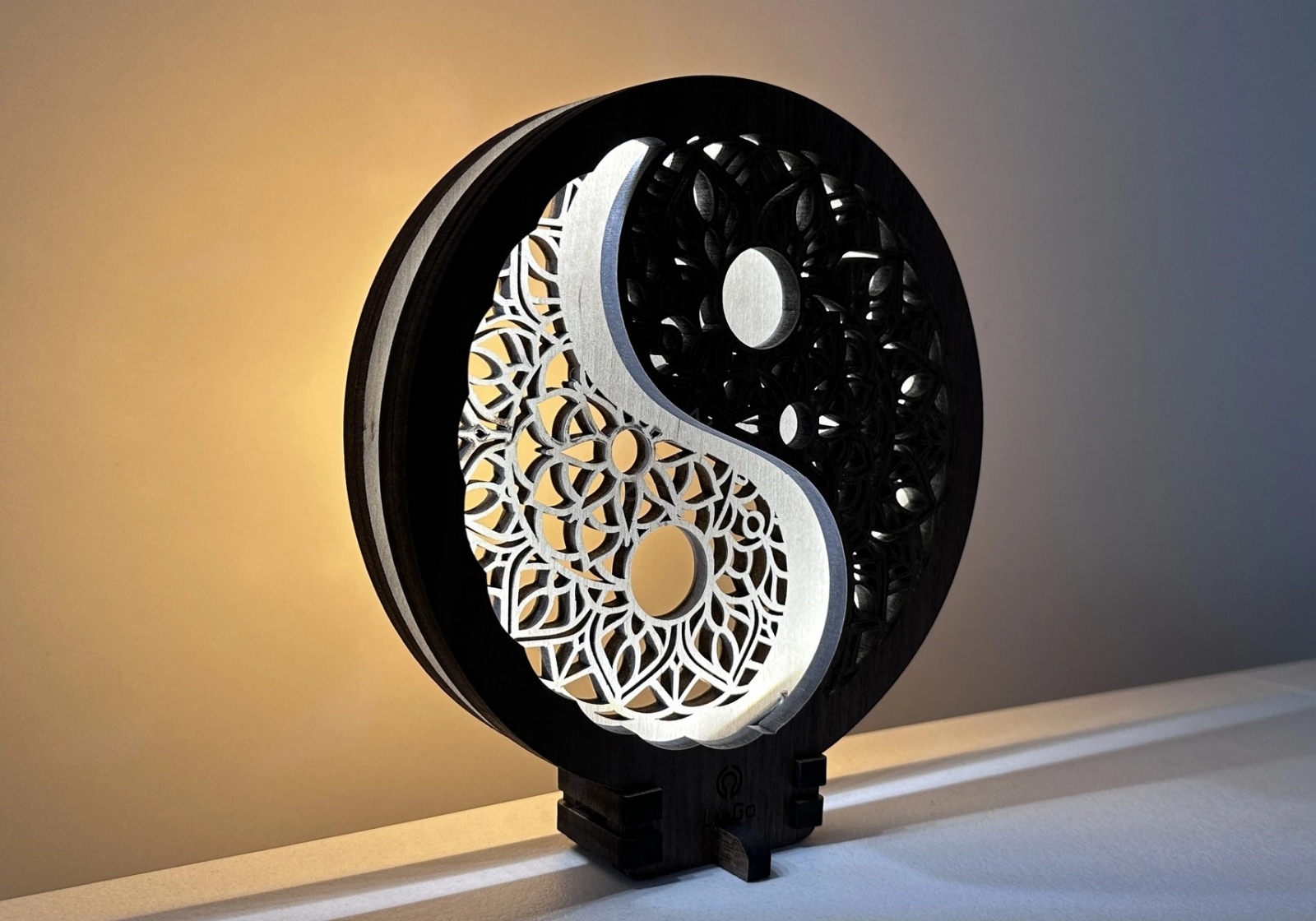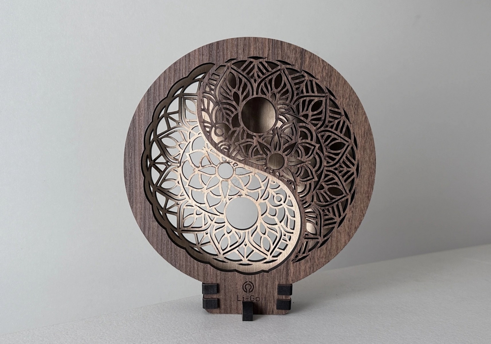 Li-Go 23607/O - LED Stmívatelná stolní dekorace LED/12W/230V 20x22 cm ořech/Jin Jang