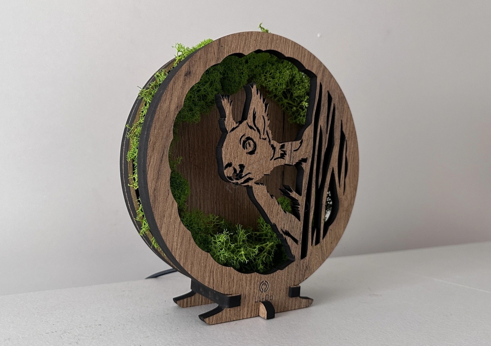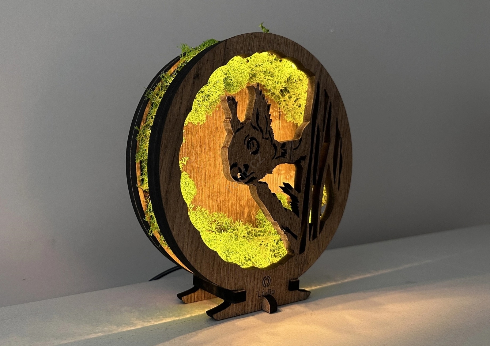 Li-Go 23625/DUB2 - LED Stmívatelná stolní dekorace LED/12W/230V 20x22 cm dub/Mechová veverka