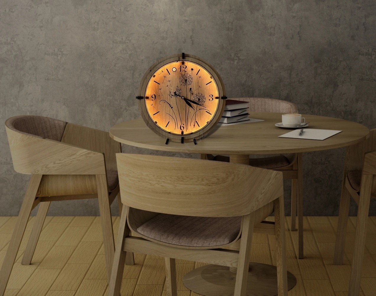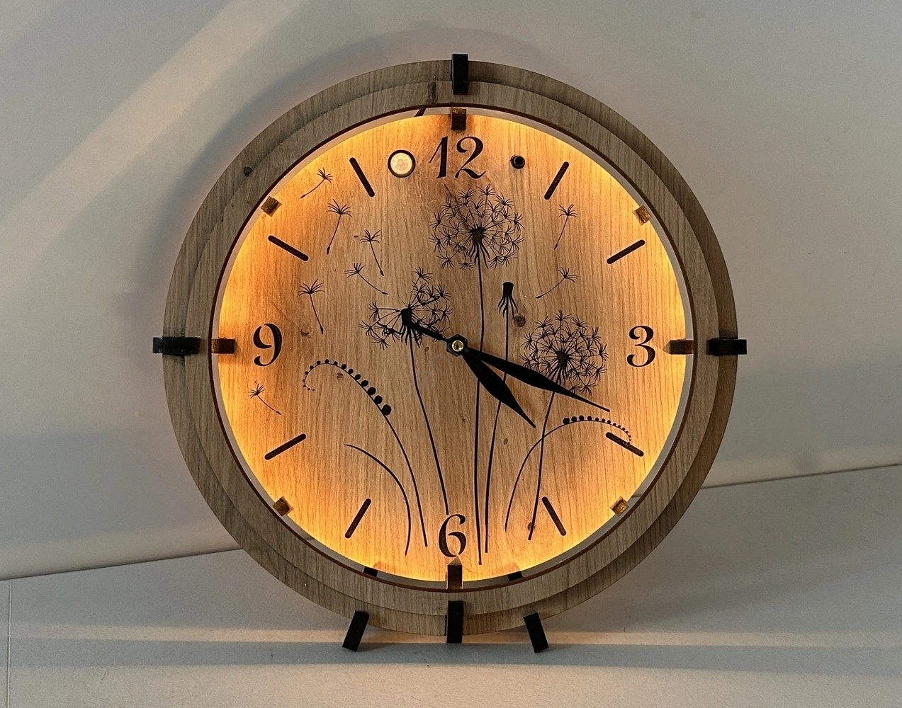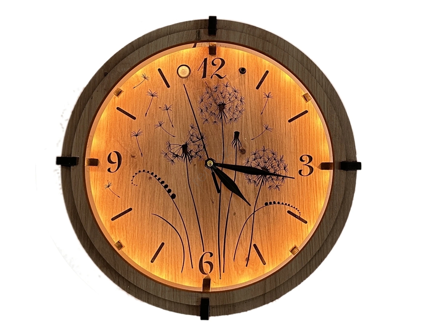 • Světelné hodiny s jedinečným vygravírovaným motivem.