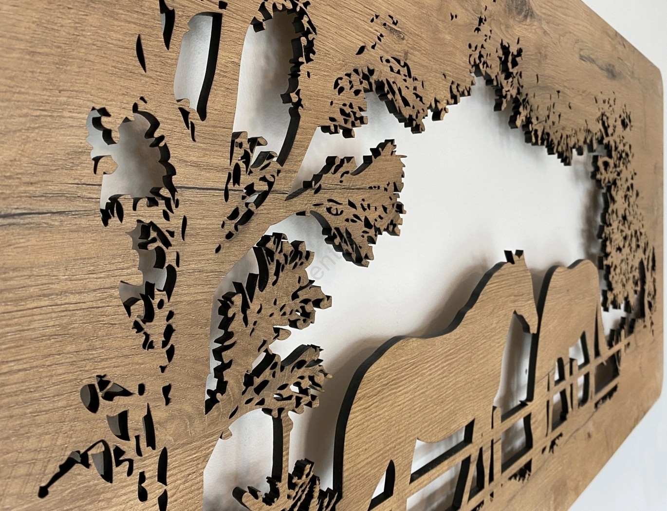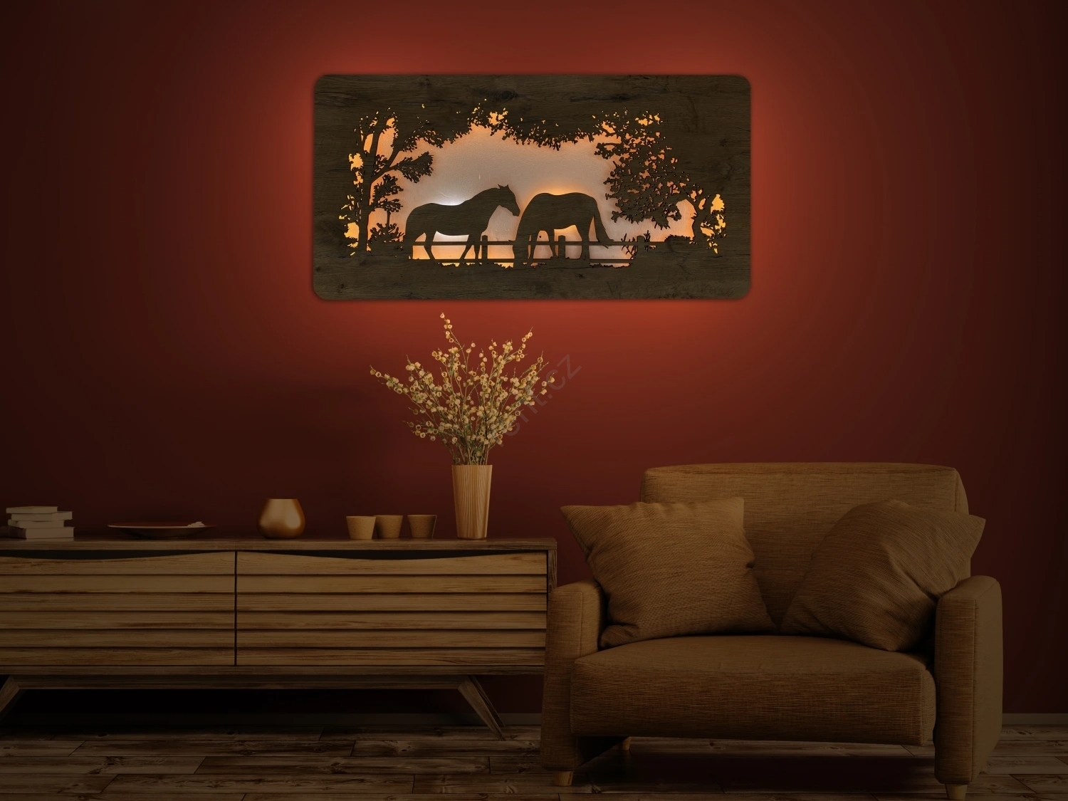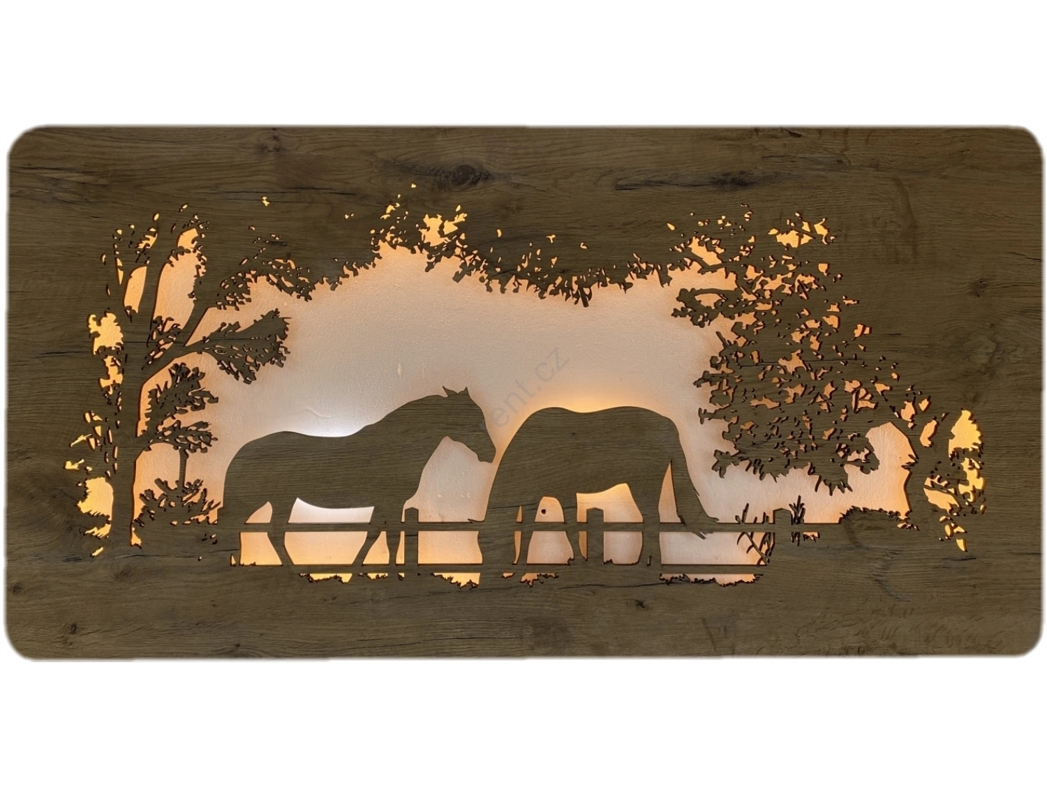 • Li-Go 5012/B/4 - LED Stmívatelná nástěnná dekorace LED/10W/5V 30000 mAh 120x60 cm dub/Koně + dálkové ovládání