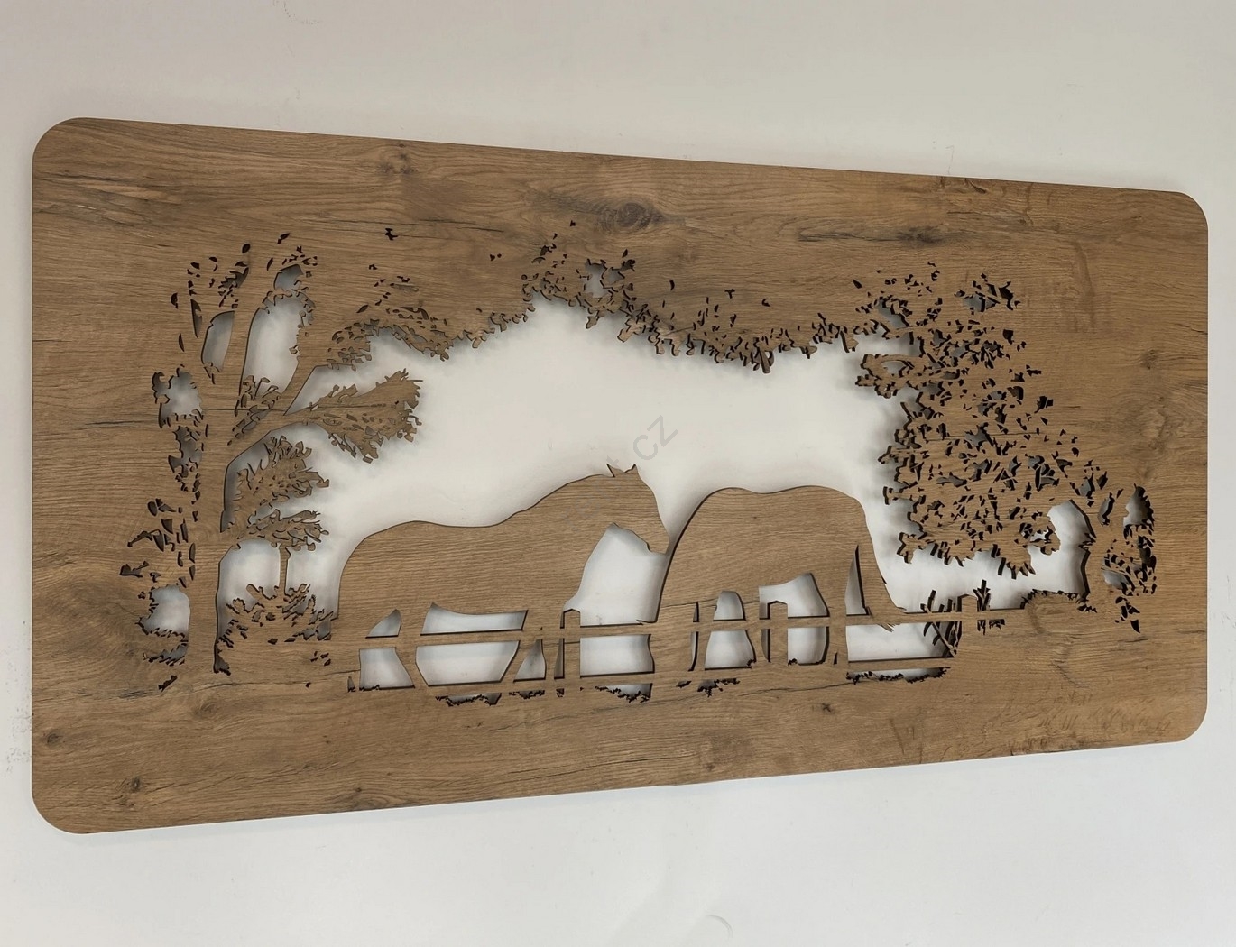 Li-Go 5012/B/4 - LED Stmívatelná nástěnná dekorace LED/10W/5V 30000 mAh 120x60 cm dub/Koně + dálkové ovládání