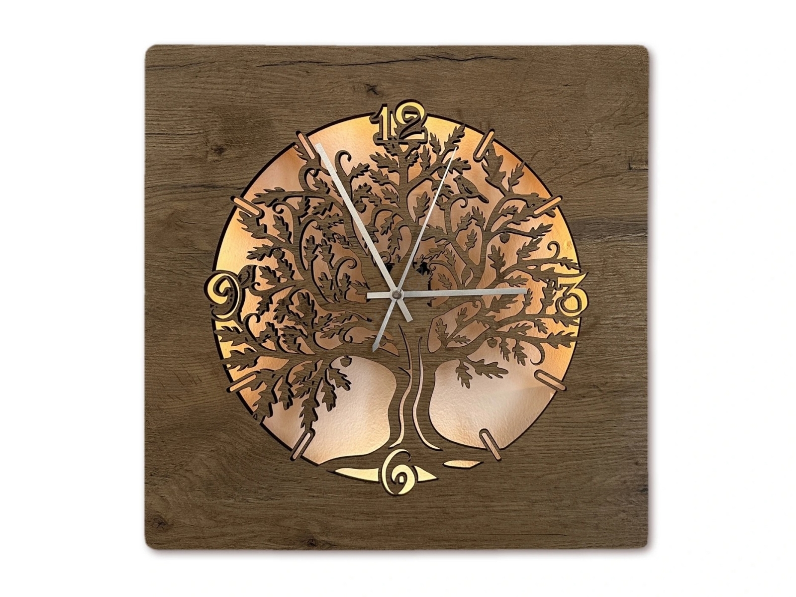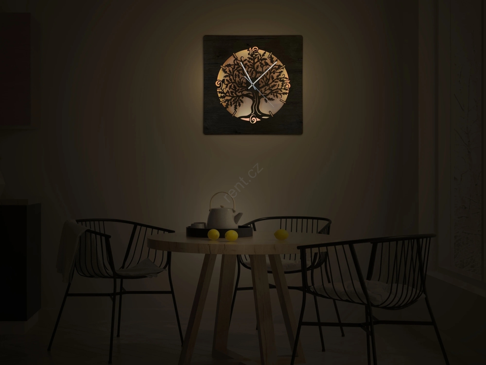• Světelné hodiny s jedinečným vyřezávaným motivem.