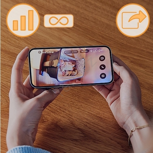 • Díky bezdrátovému připojení nabízí chůvička neomezený dosah, takže můžete své dítě kontrolovat i v době, kdy nejste doma.