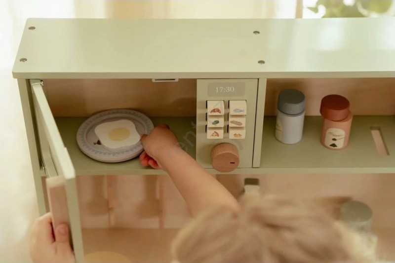 • Provedení v elegantní Mint barvě v kombinaci s přírodními dřevěnými prvky zajišťuje, že kuchyňka není jen hračka, ale i atraktivní designový prvek.