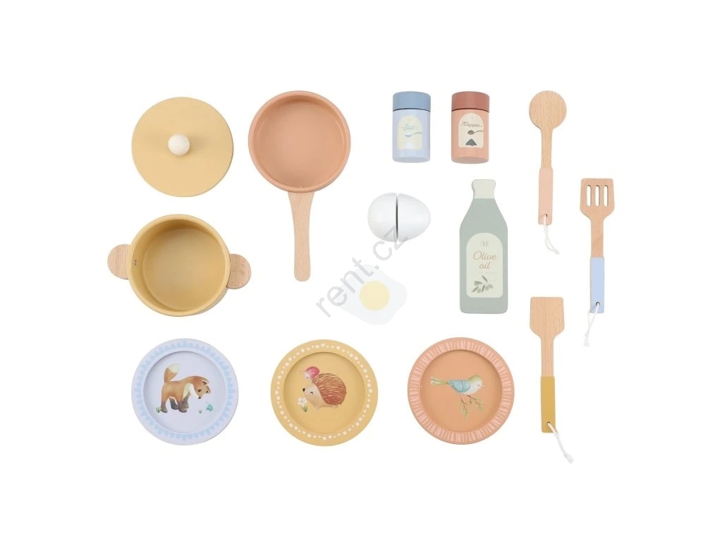 • Sada pro okamžitou hru obsahuje pět základních kusů příslušenství: kovovou pánev, hrnec, dřevěné kuchyňské náčiní a dekorativní solničku s pepřenkou.