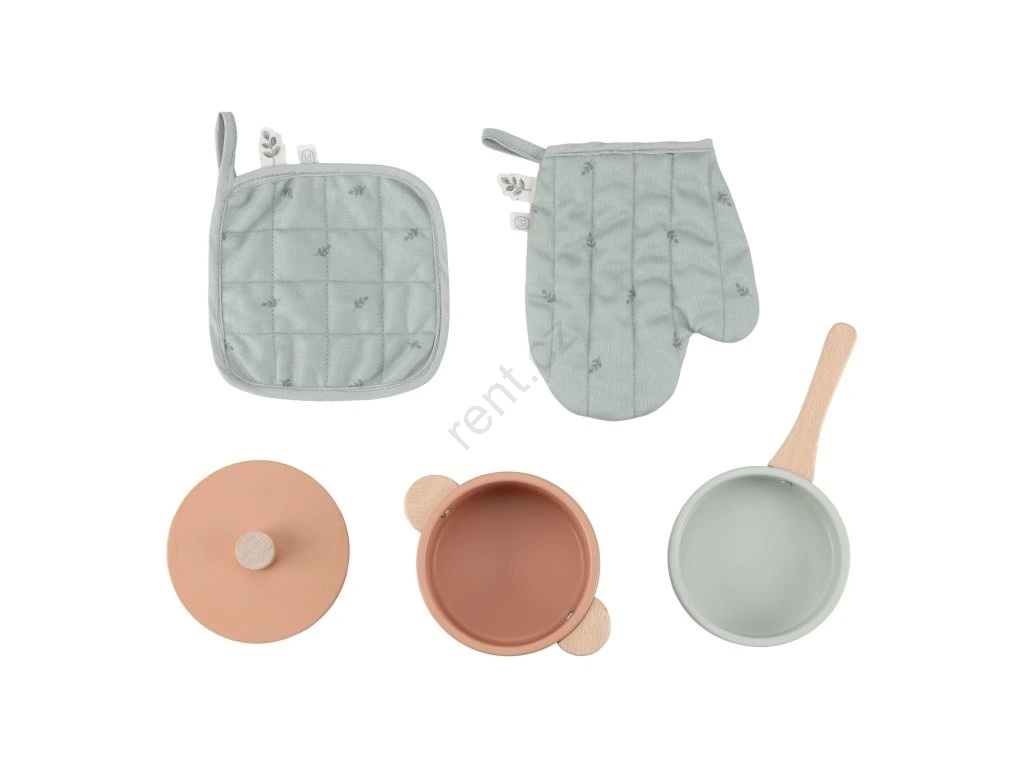 • Součástí sady je pět dílů příslušenství, včetně kovové pánve a hrnce, dvou kuchyňských nástrojů a solničky s pepřenkou, což umožňuje okamžité zahájení hry.