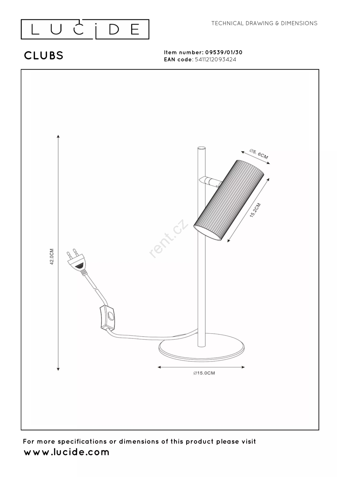 • Lucide 09539/01/30 - Stolní lampa CLUBS 1xGU10/40W/230V černá