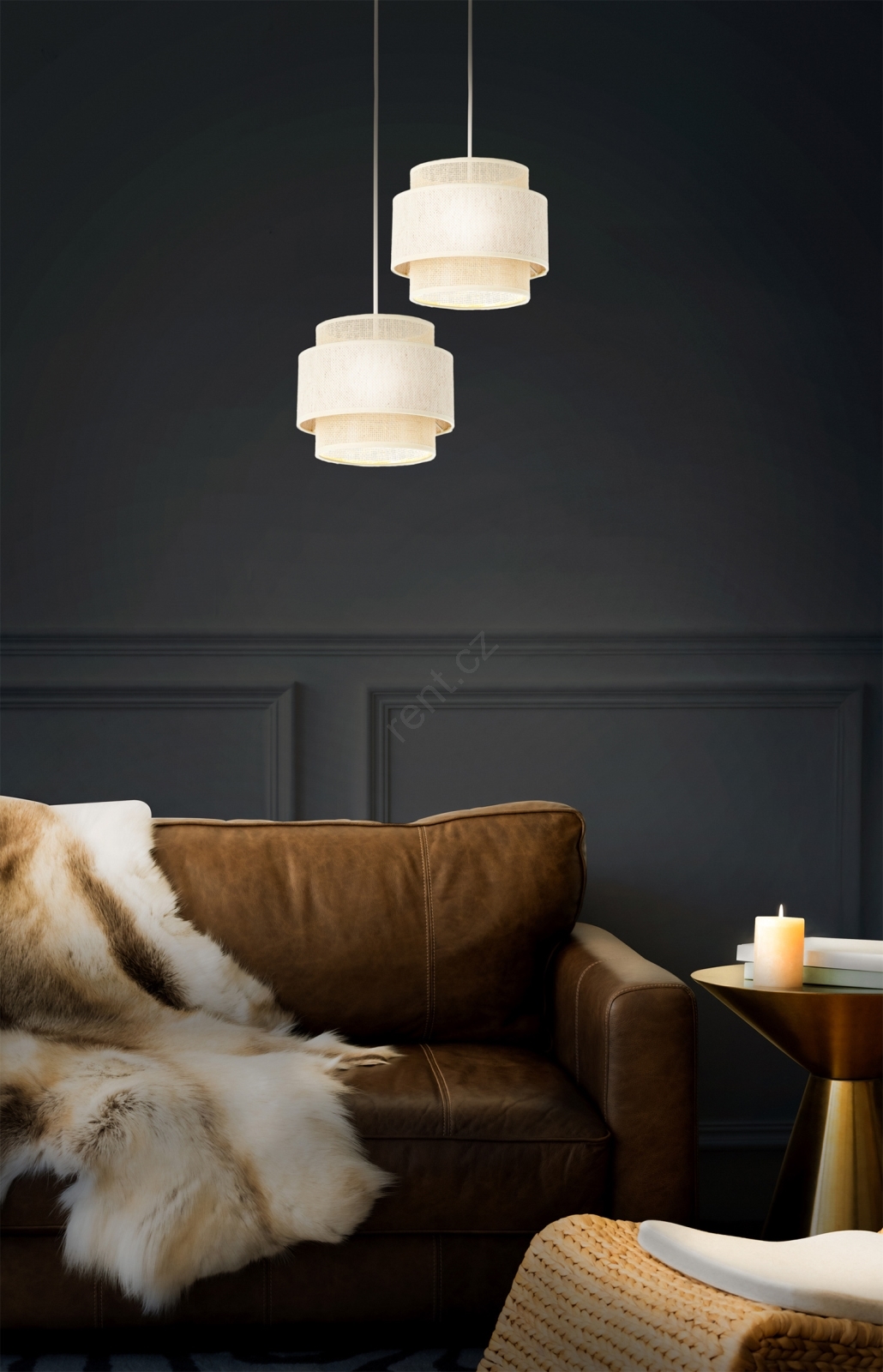 Lustr na lanku BOHO 2xE27/60W/230V krémová/juta charakterizuje pěkný design a funkční provedení.  Do svítidla je určena žárovka s paticí E27. Zde si můžete koupit další žárovky za výhodnou cenu. Získáte tak zajímavý doplněk do svého domova.