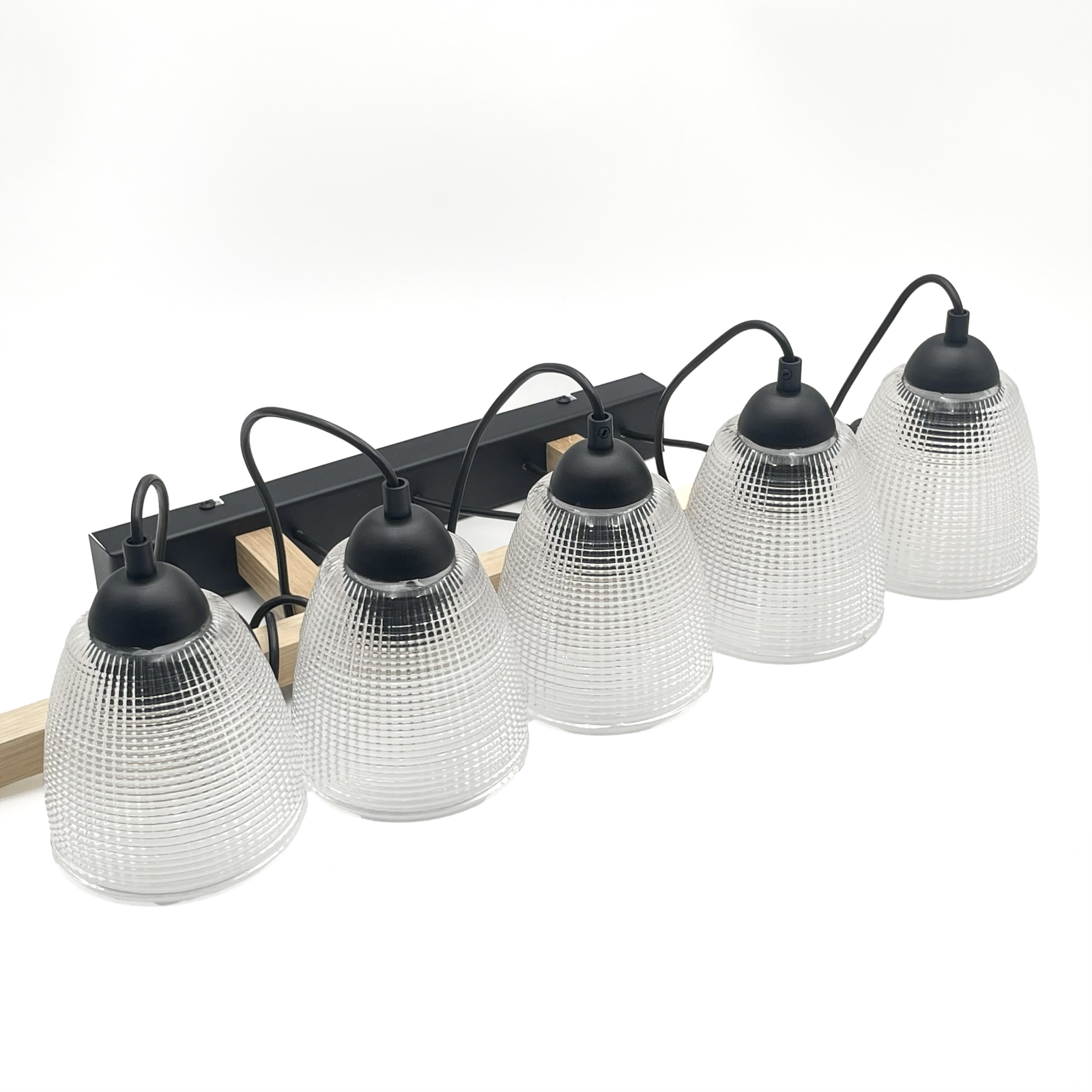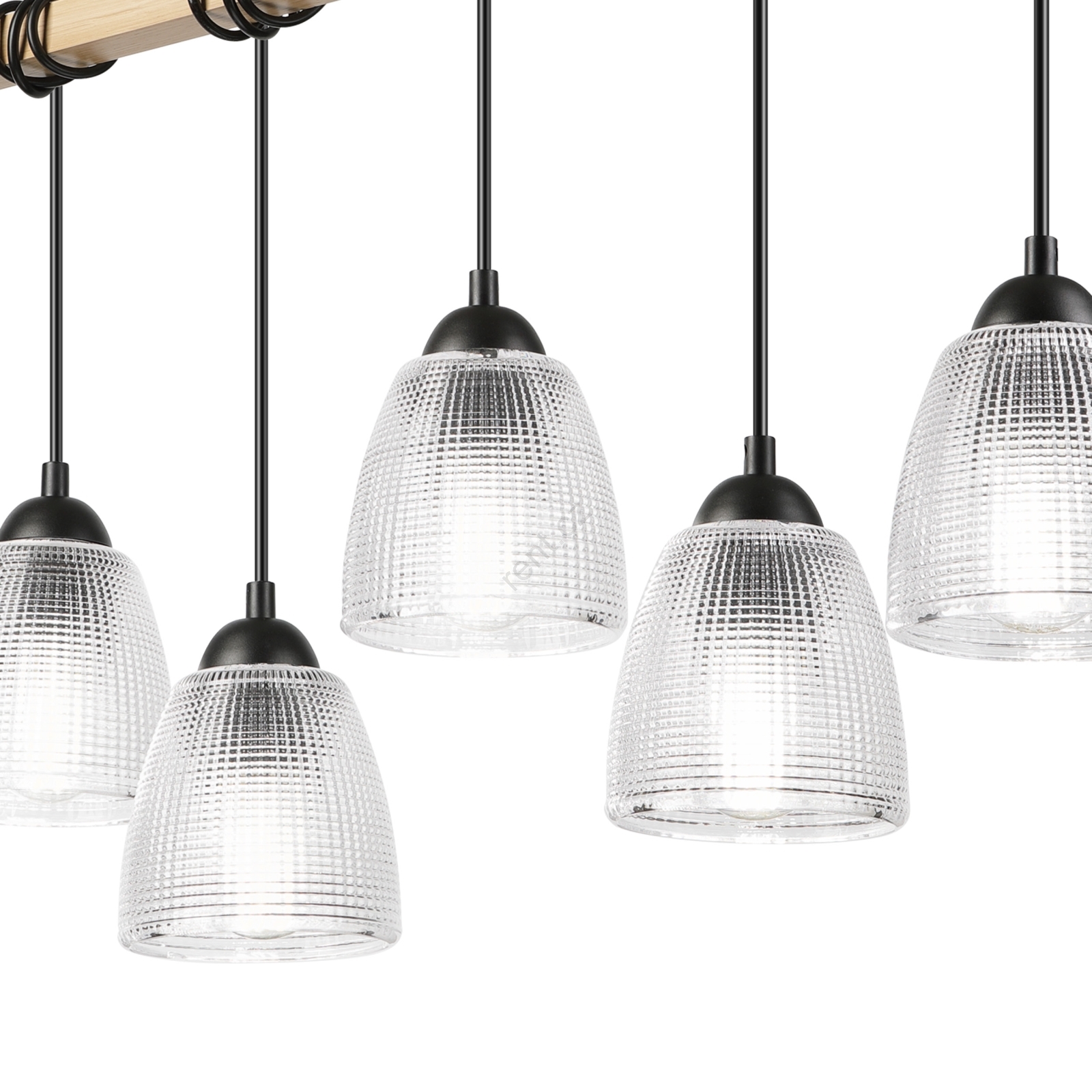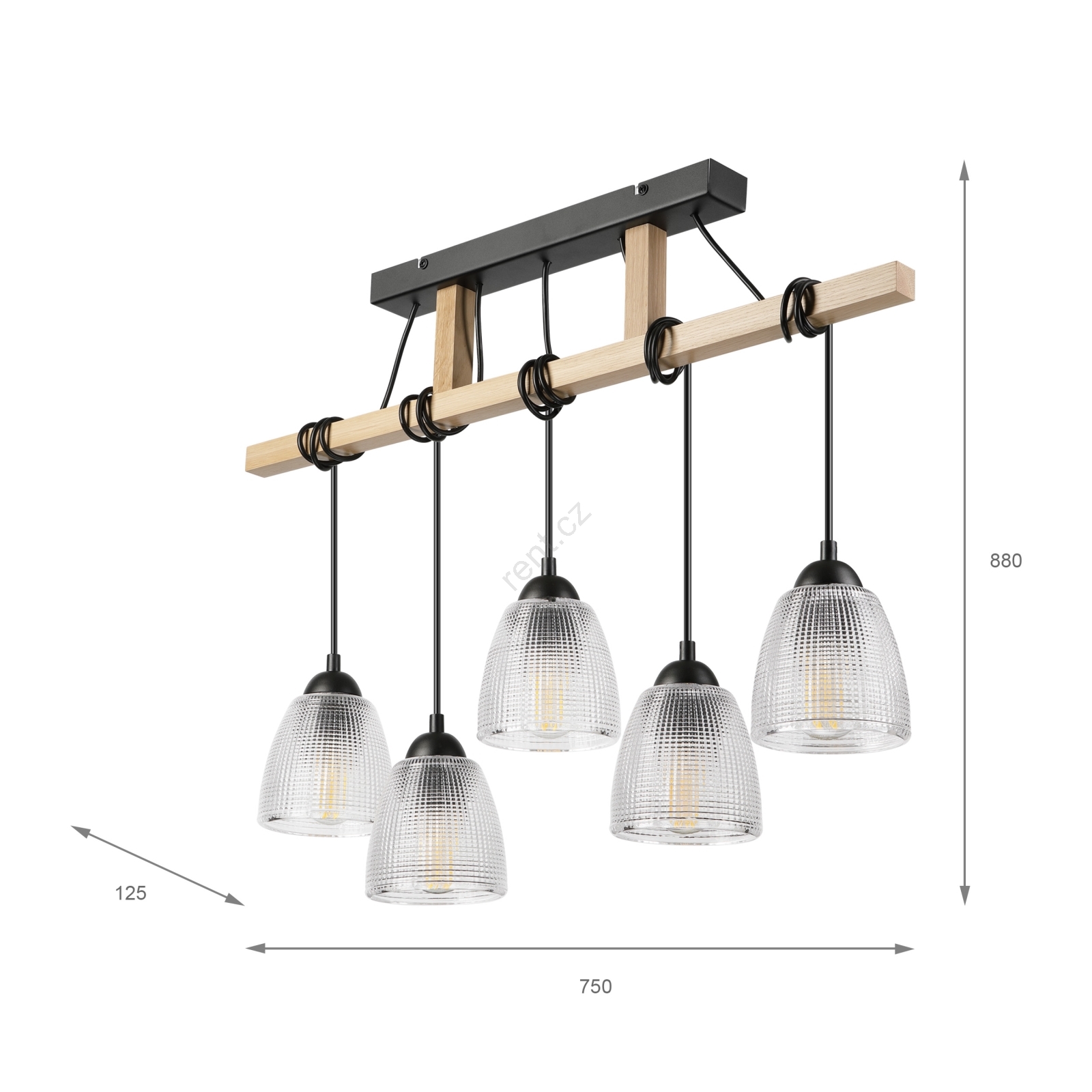 Lustr na lanku LEANDRA 5xE27/15W/230V dub/černá charakterizuje pěkný design a funkční provedení.  Do svítidla je určena žárovka s paticí E27. Zde si můžete koupit další žárovky za výhodnou cenu. Získáte tak zajímavý doplněk do svého domova.
