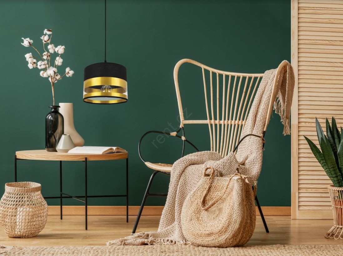 Lustr na lanku MILO 1xE27/60W/230V zlatá/černá charakterizuje pěkný design a funkční provedení.  Do svítidla je určena žárovka s paticí E27. Zde si můžete koupit další žárovky za výhodnou cenu. Získáte tak zajímavý doplněk do svého domova.