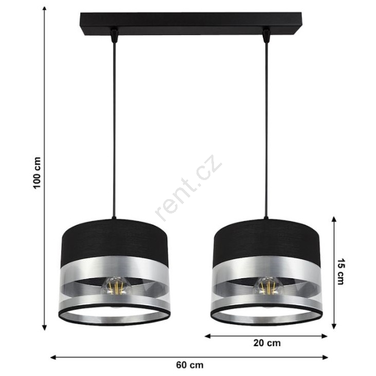 Lustr na lanku MILO 2xE27/60W/230V stříbrná/černá charakterizuje pěkný design a funkční provedení.  Do svítidla je určena žárovka s paticí E27. Zde si můžete koupit další žárovky za výhodnou cenu. Získáte tak zajímavý doplněk do svého domova.