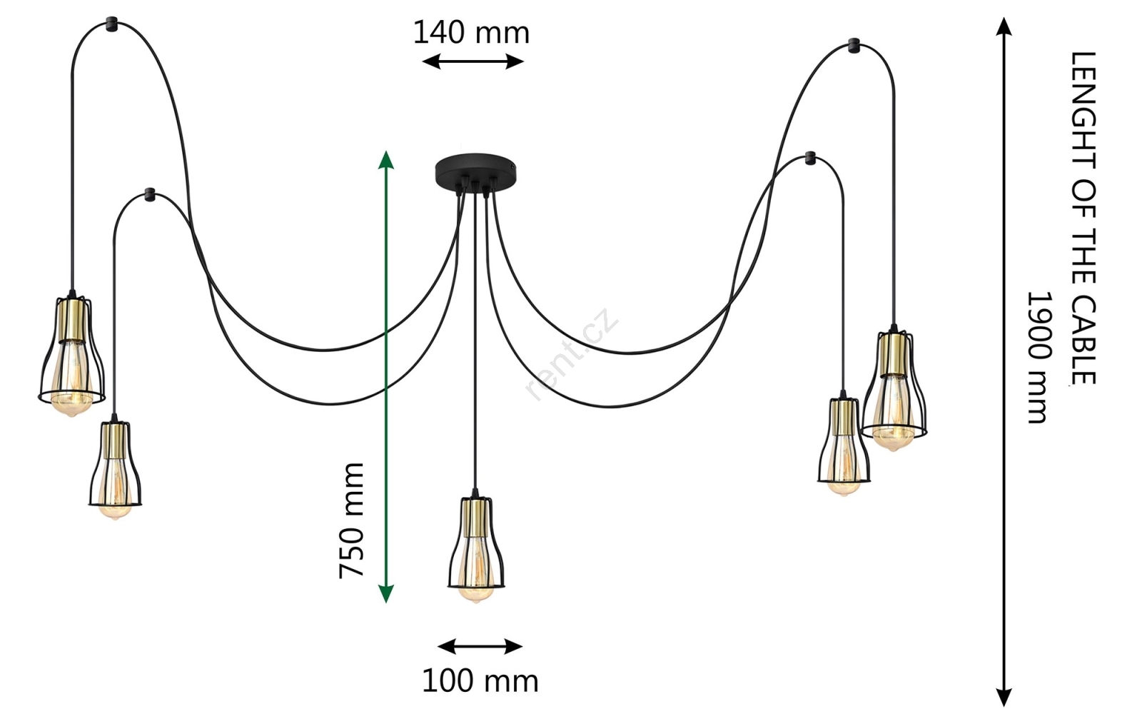 • Lustr na lanku TUBE 5xE27/15W/230V pavouk černá/zlatá