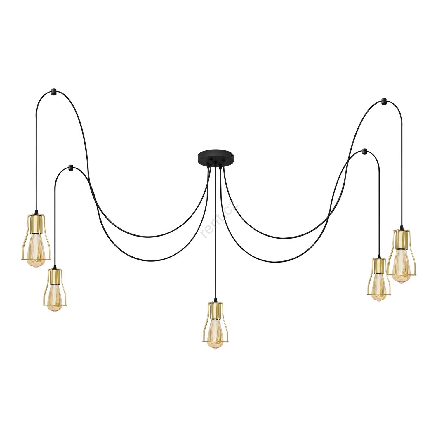 Lustr na lanku TUBE 5xE27/15W/230V pavouk černá/zlatá
