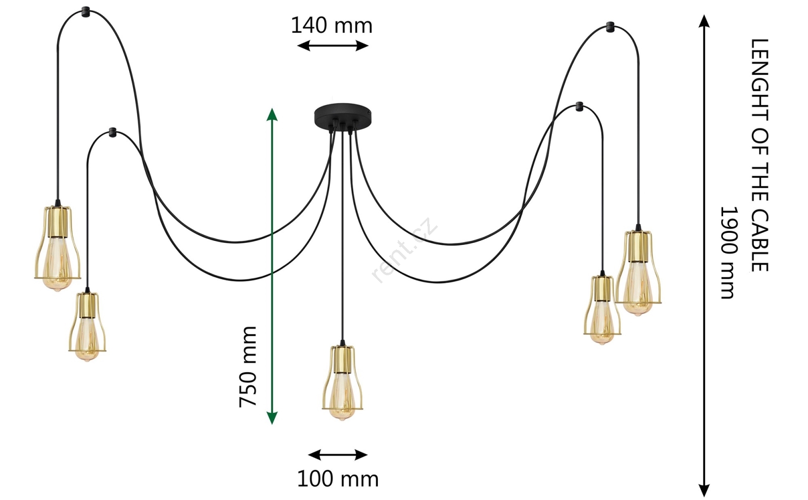 Lustr na lanku TUBE 5xE27/15W/230V pavouk černá/zlatá charakterizuje pěkný design a funkční provedení.  Do svítidla je určena žárovka s paticí E27. Zde si můžete koupit další žárovky za výhodnou cenu. Získáte tak zajímavý doplněk do svého domova.