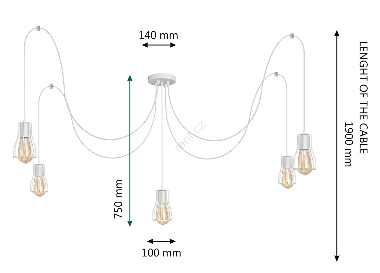 Lustr na lanku TUBE 5xE27/15W/230V pavouk bílá charakterizuje pěkný design a funkční provedení.  Do svítidla je určena žárovka s paticí E27. Zde si můžete koupit další žárovky za výhodnou cenu. Získáte tak zajímavý doplněk do svého domova.