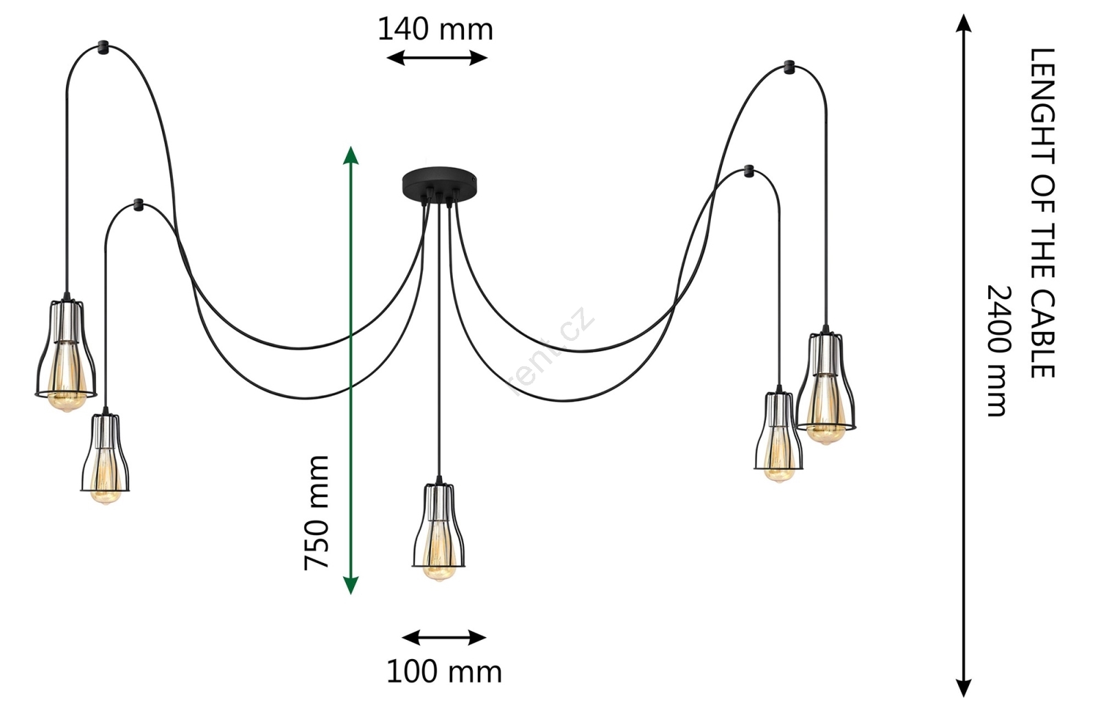 • Lustr na lanku TUBE LONG 5xE27/10W/230V černá