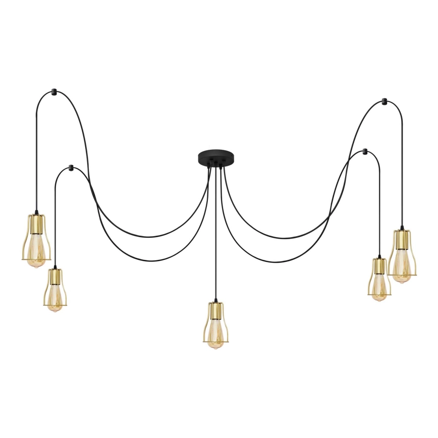 Lustr na lanku TUBE LONG 5xE27/15W/230V černá/zlatá