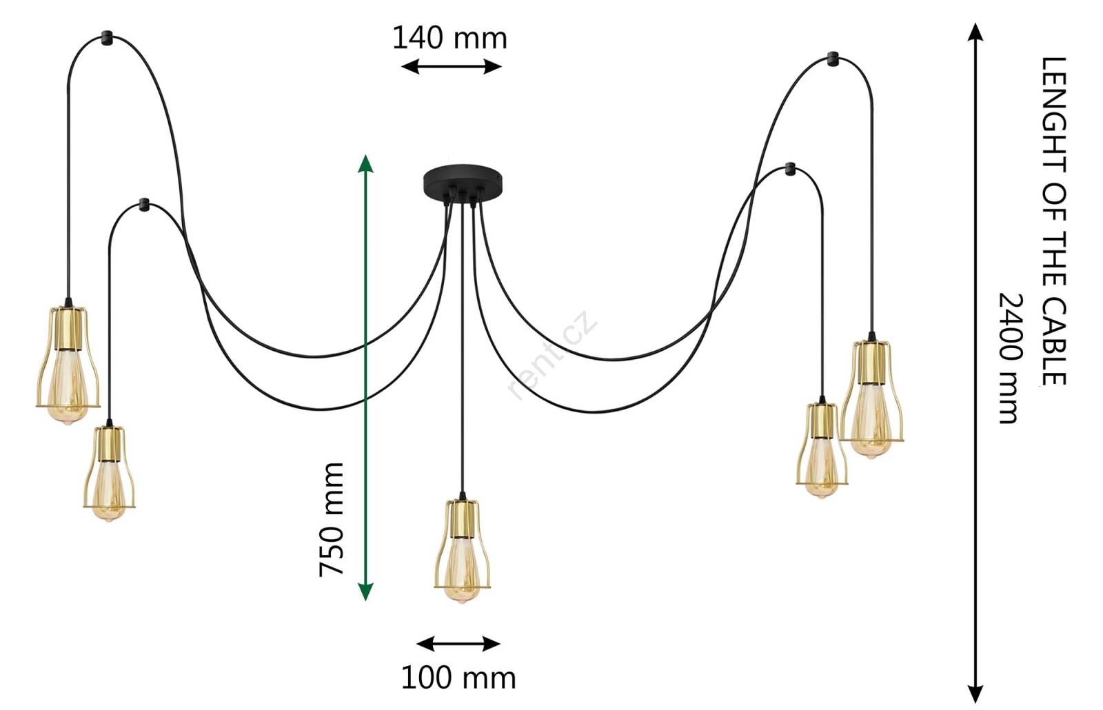 • Lustr na lanku TUBE LONG 5xE27/15W/230V černá/zlatá