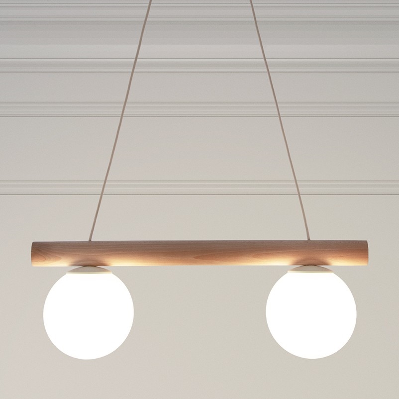 • Lustr na lanku WOODSTOCK 2xE27/15W/230V dřevo/krémová