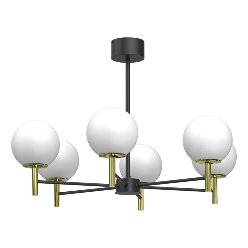 Lustr na tyči AWINION 6xE27/15W/230V bílá/zlatá/černá