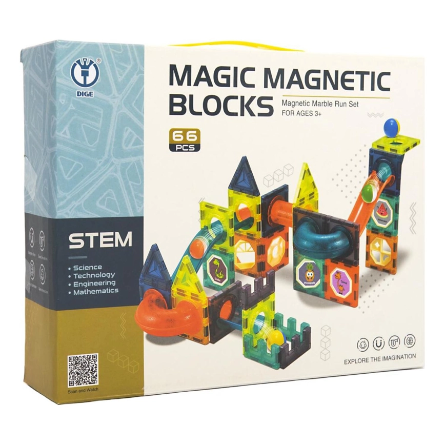 • Magnetická stavebnice s 66 díly.