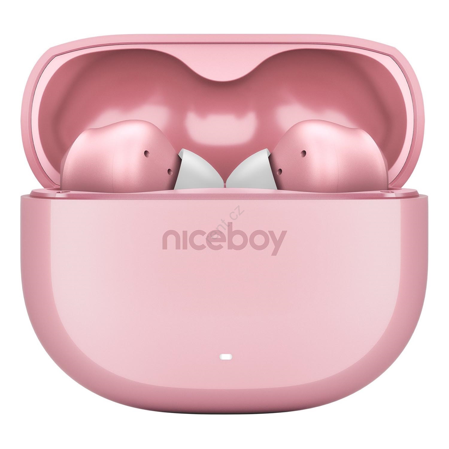 Niceboy Pins 4 - Bezdrátová sluchátka s ANC 400 mAh + 2x 50 mAh IPX4 růžová