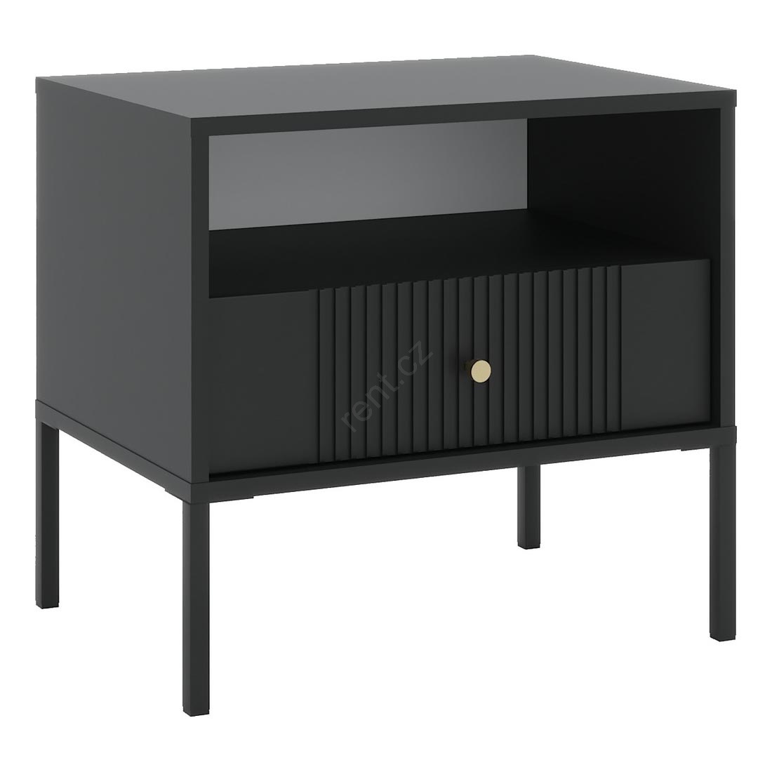 • Má jednu otevřenou poličku a jednu zásuvku zdobenou vertikálním žebrováním pro rafinovaný vizuální efekt.