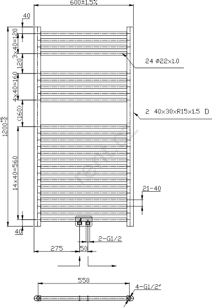 Novaservis - Koupelnový žebříkový radiátor 423W/230V 120x60 cm lesklý chrom rovný