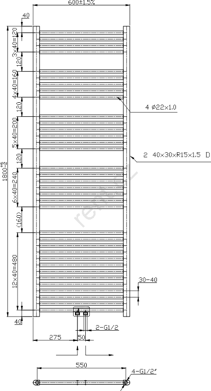 Novaservis - Koupelnový žebříkový radiátor 630W/230V 180x60 cm lesklý chrom rovný